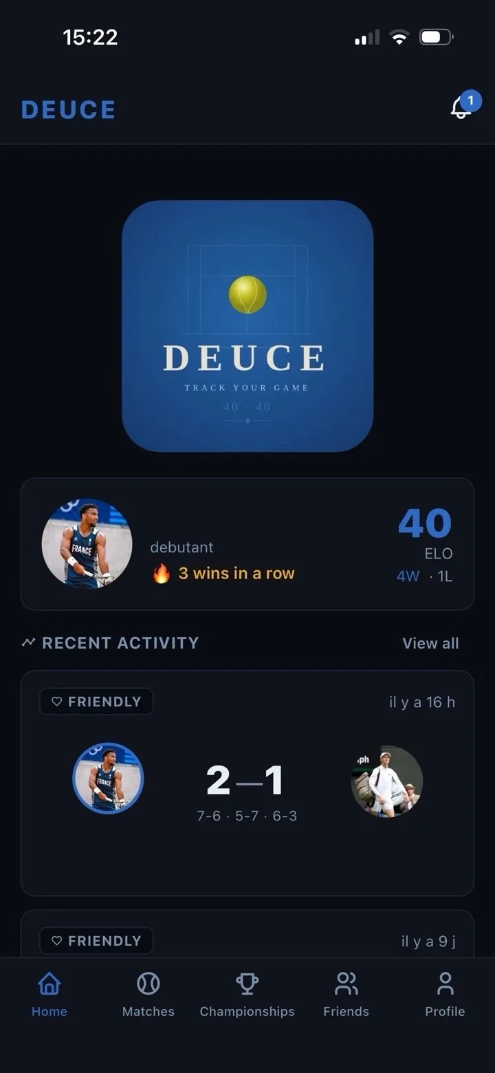 De la saisie du score en live au classement annuel, DEUCE gère tout ce dont vous avez besoin.